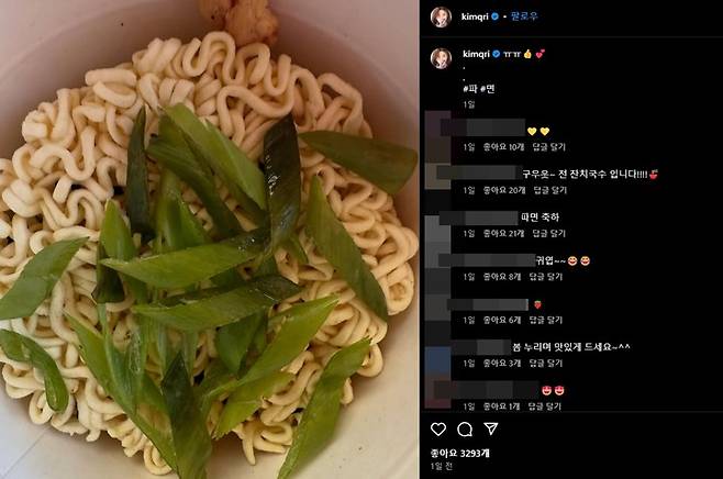 윤 전 대통령의 파면 소식이 전해지자 배우 김규리는 자신의 SNS를 통해 독특한 사진을 게시했다. 라면 면발 위에 파가 올라간 사진과 함께 '파, 면'이라는 글을 함께 올린 것이다.