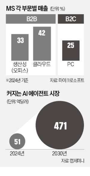 MS는 코파일럿을 앞세워 기업과 소비자 간 거래(B2C) 시장 주도권 회복에 나설 방침이다. 지난해 MS 매출에서 클라우드 등 기업 간 거래(B2B) 부문이 차지하는 비중은 75%가 넘는다. 한때 장악했던 웹브라우저, OS(운영체제) 등 B2C 시장은 구글과 애플 등 경쟁업체에 잠식당한 지 오래다. MS는 똑똑해진 코파일럿이 소비자 마음을 돌릴 계기가 될 것으로 기대하고 있다. AI업계 관계자는 “PC OS와 클라우드, 업무 협업 툴 시장의 지배적 사업자인 MS가 AI 에이전트를 업그레이드한 것은 경쟁사들에 위협으로 다가올 것”이라고 했다.