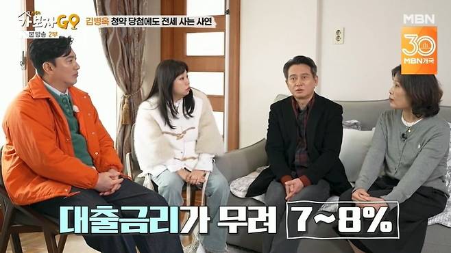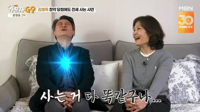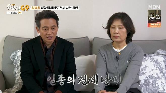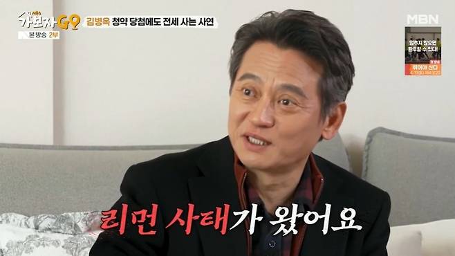 김병옥은 "지금 집에선 2년 넘게 살았다. 중동 쪽을 왔다 갔다 했다. 일종의 전세 난민이라고 하지"라며 웃었다. 김병옥은 "한 20여 년 전에 몇 년간 아파트 청약을 계속 신청했는데, 당첨됐다. 처음엔 좋아서 친구들에게 밥 사주고 다녔다. 근데 그러고 나서 리먼브라더스 사태가 왔다. 그때 이자를 못 냈다"고 밝혔다. 대출금리가 7~8%까지 올랐다고.