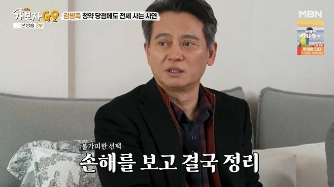 김병옥은 "더 이상 버티다간 경매에 넘어갈 것 같았다. 어쩔 수 없이 손해를 보고 정리했다. 손해금은 한 3억"이라고 털어놓았고, 아내는 "기쁜 마음으로 들어갔는데, 기쁨도 잠시였다. 금리가 계속 올라가니 스트레스를 너무 많이 받더라"고 밝혔다.