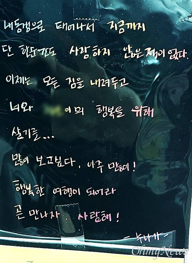 | ▲ "아주 많이! 행복한 여행이 되어라. 곧 만나자. 사랑해." |