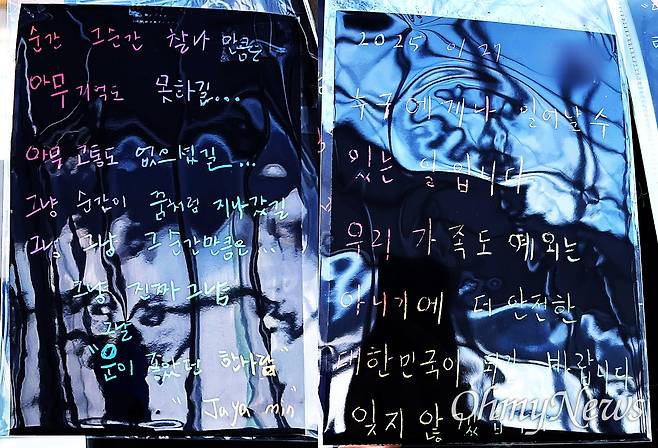 | ▲ 무안국제공항 계단에 12.29 제주항공 여객기 참사 희생자를 애도하는 편지들이 가득 붙어 있다. 2025. 02. 28. |