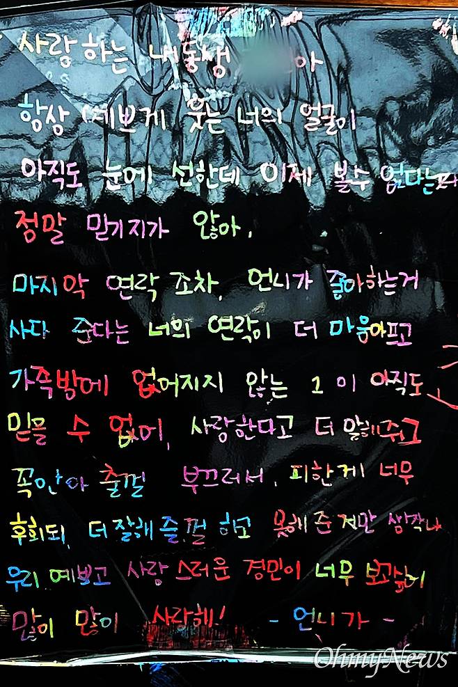 | ▲ "언니가 좋아하는 거 사다 준다는 너의 연락이 더 마음 아프고 가족방에 없어지지 않는 1이 아직도 믿을 수 없어." |