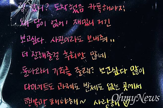 "민주야 보고 싶다. 난 아직도 거짓말 같아. 믿기지 않아. 사실 근데 진짜 내일이라도 연락해서 아니라고 할 것 같아."