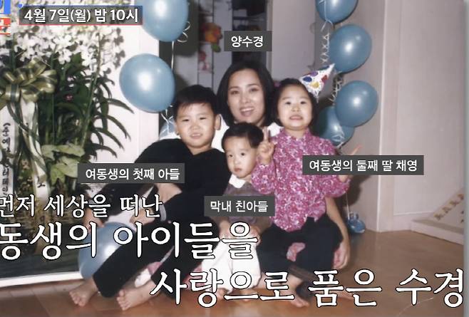 먼저 세상을 떠난 동생의 아이들을 사랑으로 품은 양수경은 여동생의 첫째 아들과 둘째 딸을 자식으로 받아들였다.