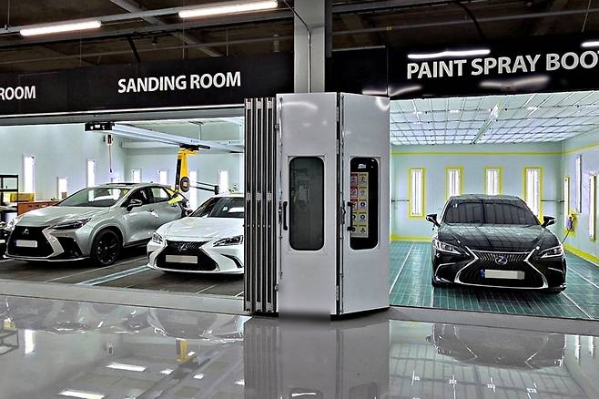 청라 서비스센터는 연면적 3,259m²(약 985평)로 지하 1층을 포함한 지상 4층 규모로 운영되며, 서비스, 부품, 사고 수리를 원스톱으로 제공하는 통합 서비스센터다. 최신형 일반 정비 워크베이 8개를 갖춰 월평균 1,000대(토요타 500대, 렉서스 500대)의 차를 수용할 수 있으며, 판금·도장 작업은 도장 부스 두 개와 알루미늄 전용 부스 한 개를 포함한 워크베이 11개를 갖춰 월평균 180대 이상을 처리할 수 있다.