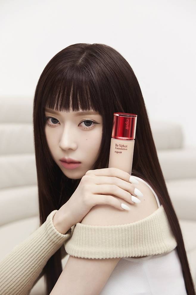 윈터는 뷰티 브랜드 ‘에스쁘아’와 함께한 비벨벳 파운데이션 화보를 통해 고급스럽고 세련된 이미지를 선보였다. 눈에 띄는 풀뱅 스트레이트 헤어, 묘하게 시선을 끄는 파란 눈동자, 그리고 코랄빛 블러 립까지 조화를 이루며 시크한 분위기를 완성한다.