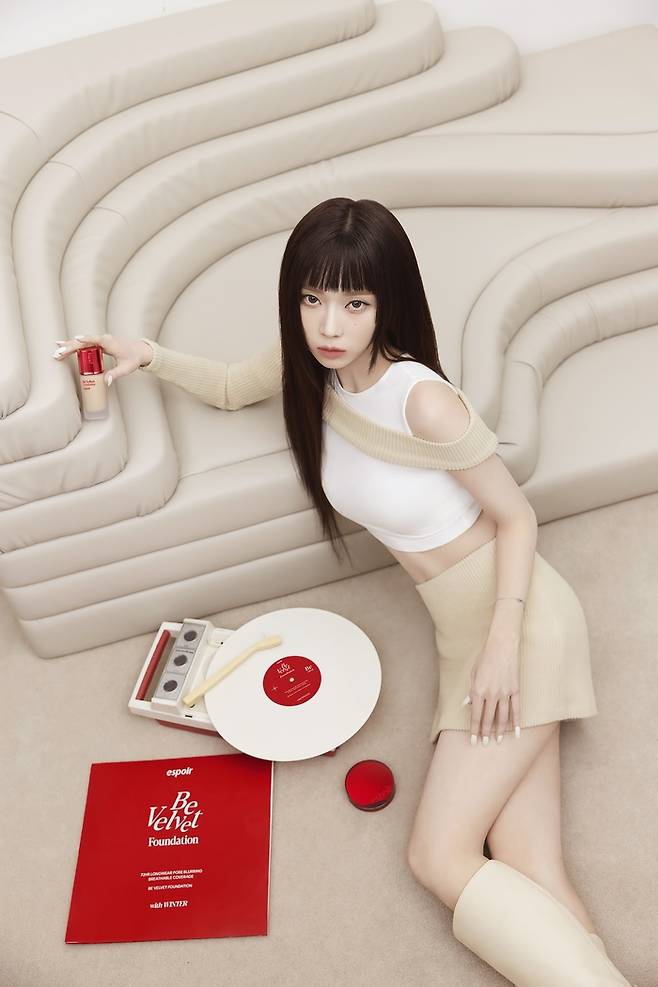 이번 화보 속 윈터의 피부를 책임진 제품은 에스쁘아의 ‘NEW 비벨벳 파운데이션’이다. 벨벳처럼 부드러운 세미 매트 텍스처로 모공은 물론 붉은기, 노란기까지 커버 가능하며, 피부 밝기 개선 효과는 기존 제품 대비 150% 향상됐다.