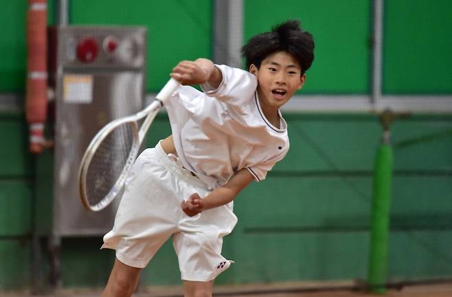 7일, 순창공설운동장 코트에서 펼쳐진 14세부 남자단식 8강에서 2번시드 김정민(동래중)은 5번시드 이상현(영남중)을 2-0(6-3 6-2)로 꺾고 4강에 진출했다.