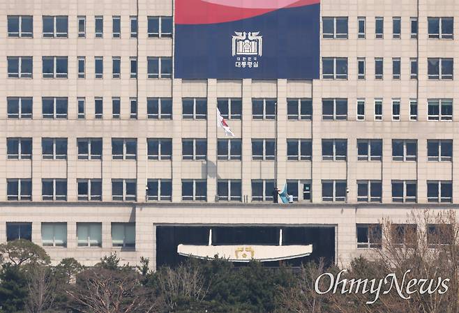 | ▲ 헌법재판소가 윤석열 대통령 파면을 선고한 4일 서울 용산구 대통령실에서 관계자들이 봉황기를 내리고 있다. |
