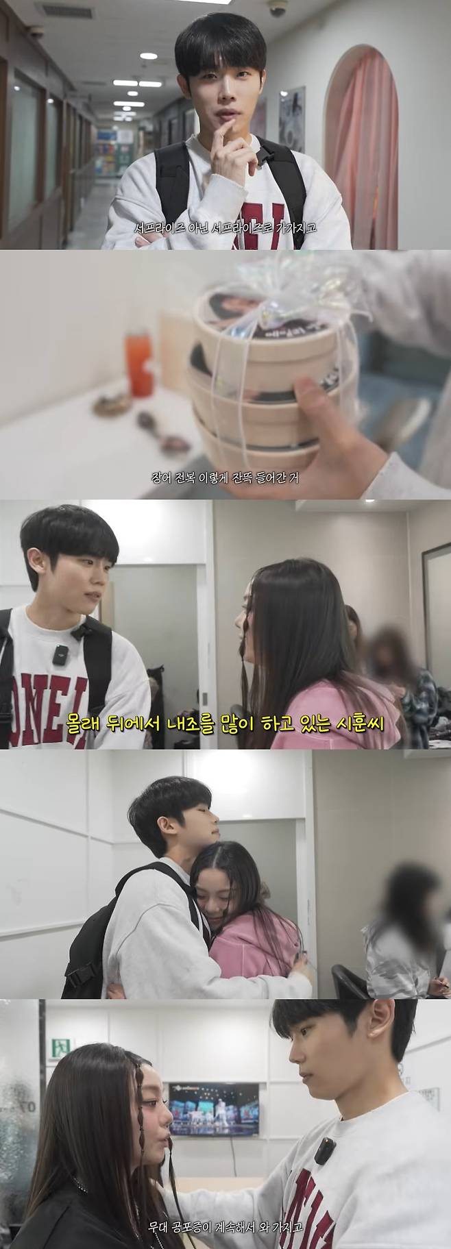 최시훈은 "컴백하는데 내가 잠깐이나마 와이프를 기분 좋게 해줬으면 생각했다. 원래는 커피차를 가지고 가서 직접 다 타 주고 싶었다. 그런데 커피차가 갈 수 있는 곳이 있고, 못 가는 곳이 또 있다고 하더라"며 도시락을 준비하게 된 계기를 전했다.