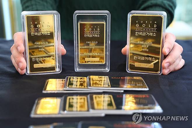 사진은 8일 서울 종로구 한국금거래소 종로본점에 진열된 골드바.