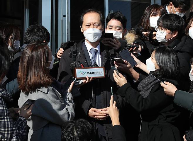 | ▲ 윤석열 검찰총장 측 법률 대리인인 이완규 변호사가 지난 2020년 12월 1일 정부과천청사 법무부에서 열린 감찰위원회 임시회의에서 의견진술을 마친 뒤 건물을 나와 취재진 질문에 답하고 있다. |