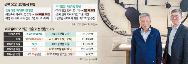 리가켐바이오가 오리온(271560)에 지분 25.73%를 4698 억원에 매각한 전략적 제휴도 비전2030 조기 달성을 위한 행보다. 김 대표는 “돈으로 시간을 샀다는 것으로 이해하면 된다”며 “오리온과의 전략적 제휴는 탁월한 선택이었다”고 말했다. 치열한 신약개발 경쟁을 위한 시간 싸움이 중요한 만큼 대주주 자리를 넘기고 받은 돈으로 R&D 속도를 앞당길 시간을 샀다는 얘기다.