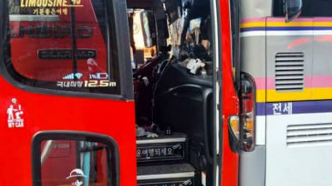 이 사고로 버스 2대에 타고 있던 50명 중 12명이 목과 허리 통증 등을 호소해 병원으로 옮겨졌습니다.