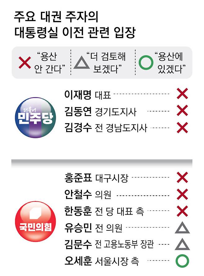 홍준표-안철수-한동훈 ‘용산 불가론’… 오세훈 “이전은 낭비” 김문수 “검토”
