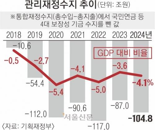 코로나19 팬데믹 때를 제외하면 적자가 100조원을 웃돈 것은 처음이다.