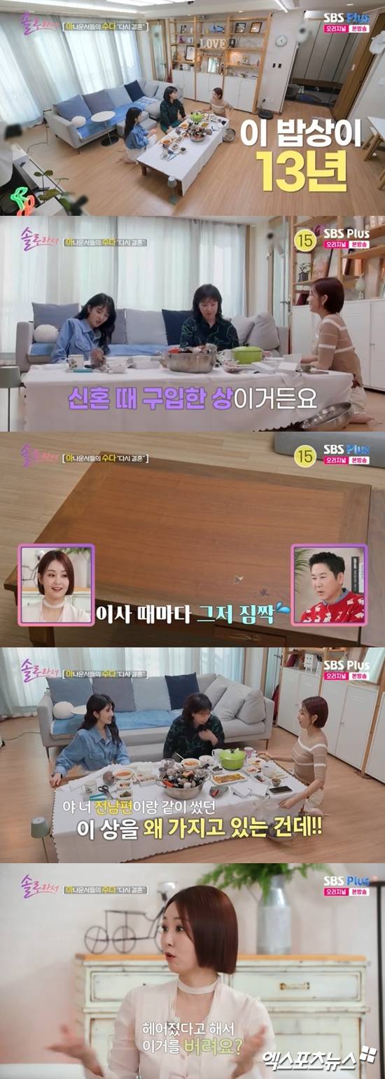 대화 도중 이혼한 지 13년이 됐다고 밝힌 오정연은 대뜸 "이 교자상도 신혼 때 집들이하려고 산 거다. 혹시 쓸까 해서 이사 갈 때마다 들고 다녔는데 거의 안 쓰더라. 짐짝이었다"고 깜짝 고백했다.