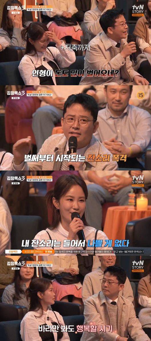 김준호는 사연을 보낸 것처럼 본격적으로 김지민에 대한 불만을 토로했다. 김준호는 “지민이가 팩폭을 하는데, 나에 대해서 조언은 조언인데 때와 장소에 안 맞게 한다. 골프를 치다가 버디 찬스가 온다. 집중을 하고, ‘나 지금 버디 찬스야’ 하기도 전에 ‘아 이 닦았어?’라고 한다. 내가 기쁜 순간인데, 이따가 끝나고 이야기해도 되는데..그럼 버디가 들어가겠냐”라고 말했다.