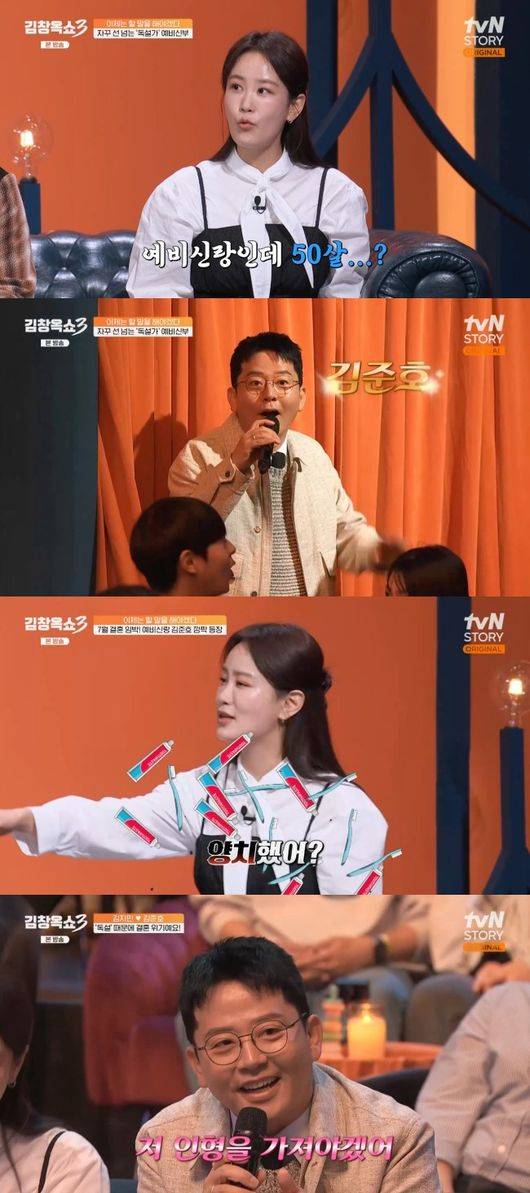 지난 8일 오후에 방송된 케이블채널 tvN STORY ‘김창옥쇼3’에는 김준호가 깜짝 등장했다. MC이자 김준호와 결혼을 앞두고 있는 김지민은 ‘50세 예비 신랑’의 정체가 김준호임을 알고 화들짝 놀랐다.