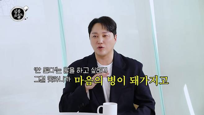 김대명은 남의 부탁을 잘 거절하지 못하는 성격이라 스트레스를 받았다고 한다. 그는 "'안 된다'는 말을 하고 싶은데 못하니까 마음의 병까지 얻었다. 거절을 연습하기 위해 가방 싸서 제주도 내려가서 일주일 동안 거절 연습을 했다. 지금은 얘기하면 재밌지만 그때는 힘들었다"고 털어놨다. 장도연이 "거절 연습은 잘했냐"라고 묻자 김대명은 "지금은 전보다는 조금 나아졌다"고 답했다.