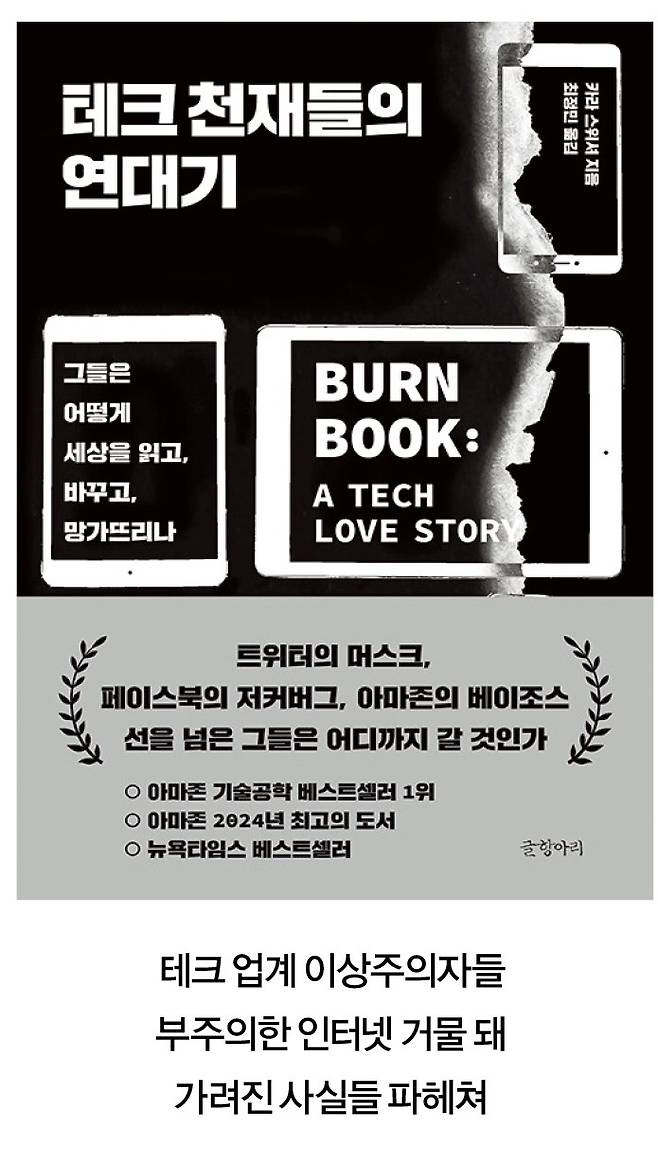 카라 스위셔는 저서「테크 천재들의 연대기」에서 세계 테크계 거물들의 민낯을 거침없이 이야기한다. 테크 분야 전문 기자로서 테크업계의 이상주의자들이 어떻게 세상을 읽고, 바꾸고, 망가뜨려 가는지 파헤친다.