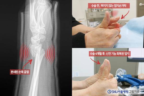 만약 간단한 손목 골절 이후 엄지의 신전이 잘되지 않는다면 가까운 병원을 찾아서 영상 검사 등을 통해 정확한 진단을 받고, 수부외과 세부전문의와의 상담해 수술 여부를 결정하는 것이 바람직할 것이다.