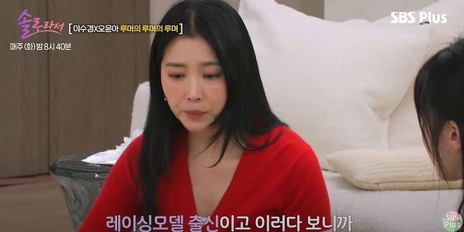 8일 방송된 SBS플러스·E채널 예능 프로그램 '솔로라서'에서는 오윤아가 동료 이수경과 함께 출연해 루머와 그로 인한 어려움에 대해 이야기했다.