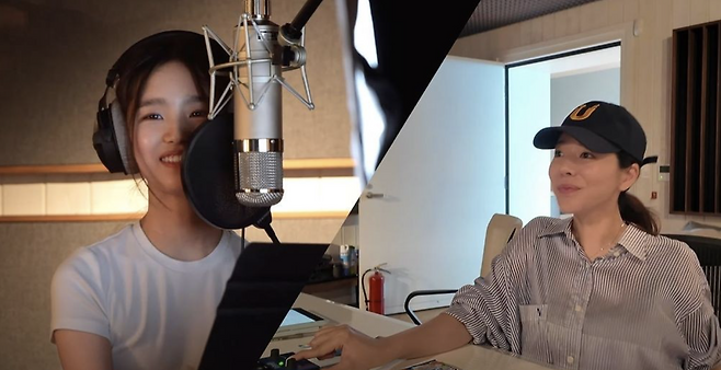 써니는 편안한 차림으로 콘솔 박스 앞에 앉아 노래를 직접 디렉팅했다. 따뜻한 미소로 연습생들을 응원했다.