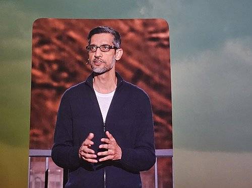 (라스베이거스=연합뉴스) 김현수 기자 = 순다르 피차이 구글 최고경영자(CEO)는 연례 기술 콘퍼런스 '구글 클라우드 넥스트 2025' 개막을 하루 앞둔 8일(현지시간) 스피어에서 열린 축하 행사에 깜짝 등장해 AI를 활용한 '오즈의 마법사' 재해석 프로젝트를 공개했다. 사진은 순다르 피차이 구글 최고경영자(CEO). 2025.4.9