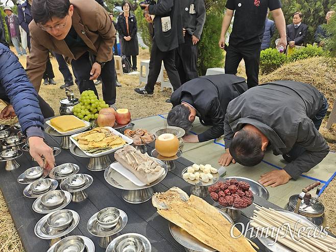 안 위원장은 "열사들의 고향 이곳 대구경북은 망국적이고 허구적인 반북, 반공 이데올로기에 아직도 사로잡혀 더욱 수구화 되어 가고 있다"면서 "오늘의 현실에서 가슴은 더욱 무겁고 시리지만 다시 한 번 새로운 다짐을 해본다"고 머리를 숙였다.