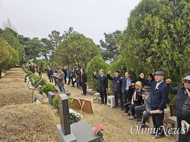 | ▲ 박정희 군사독재시절 고문과 사건 조작으로 희생된 '인혁당재건위' 사건 50주기를 맞아 대구지역 시민단체들이 현대공원 열사묘역에서 추모제를 지냈다. |