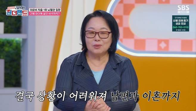 [TV리포트=한수지 기자] 뇌출혈 후유증으로 남편과 이혼한 의뢰인의 사연이 공개됐다.