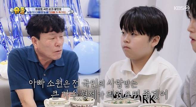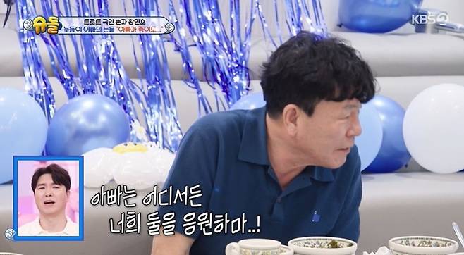 아빠는 엄마와 22살 차이 나는 자신의 나이를 생각하며 "다들 오래 보고 싶은데, 나이 앞에선 장사 없더라. 우리 아들들이 진짜 가수란 소리를 들었으면 한다. 그 순간에 내가 이 세상에 없더라도 하늘에서 응원하겠다"고 마음을 표현했고, 가족들은 눈물을 흘렸다. 박수홍과 최지우는 "제 마음과 같다. 남 일 같지 않다"며 공감했다. 이후 황민우, 황민호 형제는 용돈 100만 원이 나오는 케이크를 건넸다.