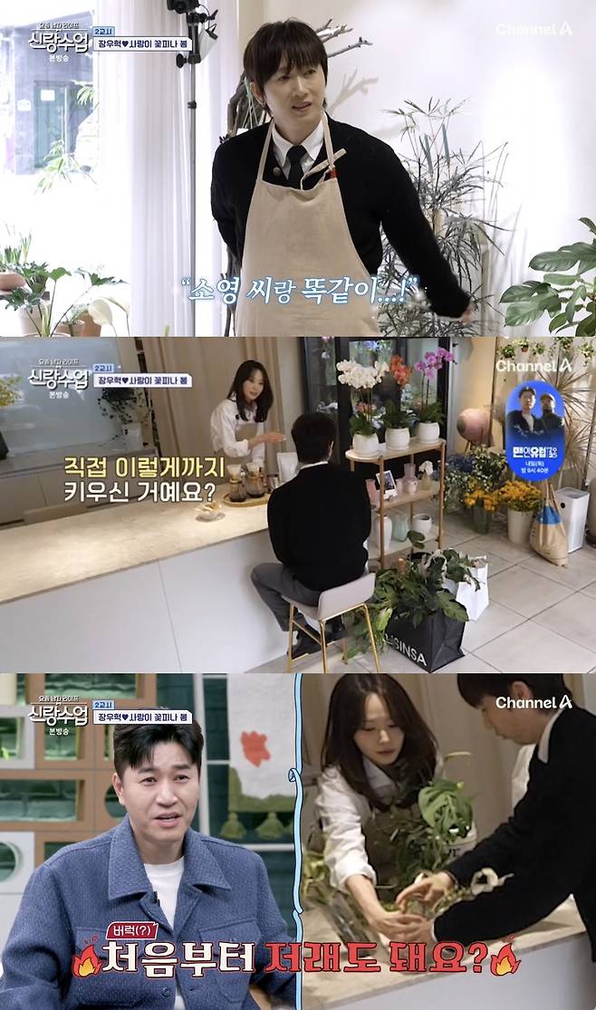 9일 방송된 채널A '요즘 남자 라이프-신랑수업'에서는 장우혁이 분갈이를 겸한 자만추에 나섰다.
