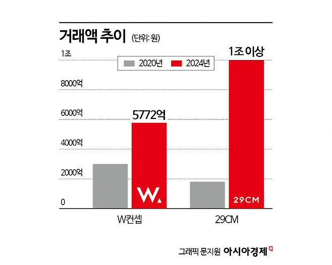 업계에서는 W컨셉이 성장 정체에 직면했다는 분석을 내놓는다. W컨셉의 지난해 거래액은 5772억원이다. 이는 신세계그룹 품에 안겼을 무렵 거래액(3000억원) 대비 2772억원 늘어난 수치다. 반면 같은 연령대의 여성을 타깃으로 하는 패션 플랫폼 29CM는 2020년 기준 거래액 1800억원에서 지난해 기준 1조원을 돌파했다.