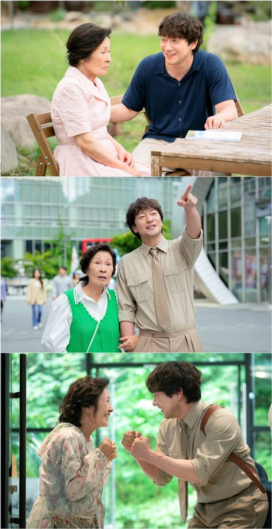 오는 19일 첫 방송되는 JTBC 새 토일드라마 '천국보다 아름다운' 측은 10일, 이해숙(김혜자 분)과 고낙준(손석구)의 '저 세상' 케미스트리가 담긴 스틸컷을 공개했다.
