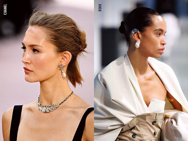 2025 S/S 시즌, 진주는 한층 색다른 무드로 우리를 찾아왔다. 매끈한 구형 진주 대신 자연스럽고 자유분방한 형태의 진주들이 런웨이를 점령한 것. 샤넬과 로크는 울퉁불퉁한 모양의 진주 귀걸이로 파워풀함과 우아함이 공존하는 매력을 강조했다. 구조적인 실루엣의 이어 커프, 펜던트 목걸이 등 다양한 디자인의 진주 주얼리도 대거 등장한 만큼, 진주 스타일을 시도해볼 최적의 타이밍이다.