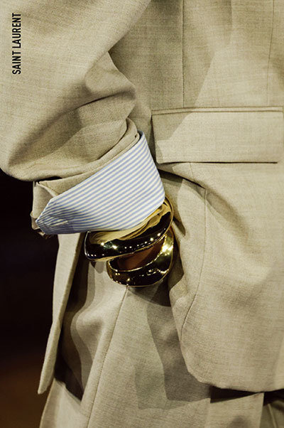 봄과 여름만 되면 늘 찾게 되는 볼드한 뱅글. 특별할 게 없다고 생각했다면 오산이다. 이번 시즌엔 조형미가 돋보이는 흥미로운 스테이트먼트 뱅글이 유난히 많아졌다. 생로랑은 기하학적이면서도 비정형적인 실루엣의 간결한 뱅글을 여러 개 레이어드하며 '다다익선’의 미학을 강조했다. 스테이트먼트 주얼리가 부담스러울 수도 있지만, 어렵지 않게 과감한 멋을 연출할 수 있다는 것이 가장 큰 장점. 옷장을 열어봐도 딱히 입고 싶은 게 없고, 손이 가는 가방마저 지겹게 느껴진다면? 뱅글이 정답이다.