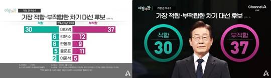 이재명 전 더불어민주당 대표와 가까운 한 중진 의원의 평가입니다. 오늘(10일) '10분 다큐'로 대선 출마를 선언한 이 전 대표의 고민 중 하나죠. 호감도 뿐 아니라 비호감도도 높다는 건데요. 엠브레인퍼블릭이 MBC 의뢰로 지난 5~6일 유권자 2090명을 대상으로 조사한 결과를 볼까요. 이 전 대표, 차기 대통령 적합도 30%로 1위였지만 부적합도에서도 37%로 1위를 차지했습니다.