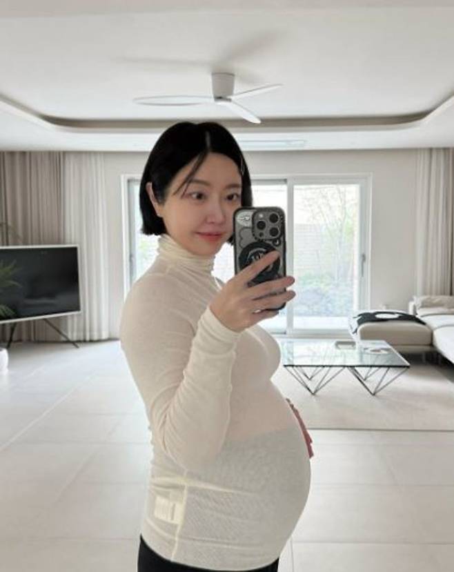대중은 "언니 힙산부", "조카야 얼른 보고 싶다", "배 나온 모습도 너무 예뻐요.", "어머머 이제 제법 임산부티가 나시네요 예쁜 둥이들 건강하게 잘 크고 있나 봐요" 등 댓글을 남겼다.