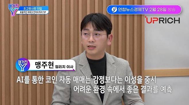 자동매매 솔루션 전문기업 업리치는 연합뉴스경제TV '매거진Y'의 AI 재테크 편에 출연했다고 4일 밝혔다.