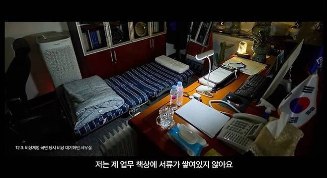 영상에는 비상계엄 선포 후 이 전 대표가 국회에서 숙식하며 비상대기할 때 사용한 간이침대와 책상 등이 놓인 국회 사무실 모습도 담겼습니다.