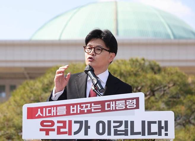 한동훈 국민의힘 전 대표는 국회 본관 분수대 앞에서 출마 선언식을 열었습니다.