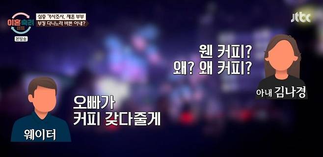 한편, 아내의 반전 생활이 공개되며 분위기는 다시 얼어 붙었다. 아내는 몸이 안 좋아 약까지 복용하며 술을 마셨다. 여기에 그치지 않고 아내는 나이트를 갔고, 다른 남성과 부킹을 한 정황도 포착됐다.
