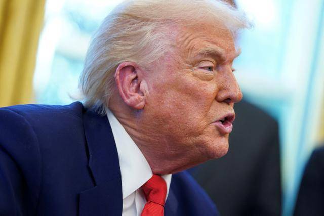 도널드 트럼프 미국 대통령이 9일 워싱턴 백악관에서 각종 행정명령에 서명한 뒤 발언하고 있다. 트럼프 대통령은 이날 중국을 제외한 교역국에 상호관세 부과를 90일간 미룬다고 밝혔다. 워싱턴=로이터 연합뉴스