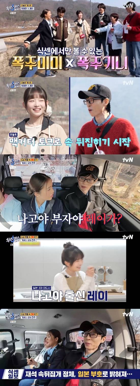 또 고경표는 "레이가 나고야 사람이냐"라며 궁금해했고, 미미는 "나고야 부자"라며 감탄했다. 유재석은 "나고야 부자야? 레이가? 어쩐지 너. 너 부자였구나. 어쩐지. 이제 알았어. 나고야 부자데스"라며 호들갑을 떨었다.