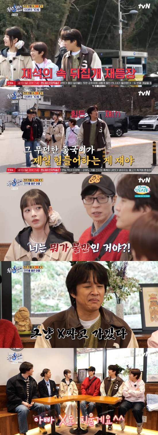 그뿐만 아니라 유재석은 차태현이 계속해서 의심만 늘어놓자 "너는 뭐가 불만이냐"라며 만류했다. 차태현은 "난 일단 ('식스센스' 팀에게만 온) 커피차가. 나도 tvN 하는데"라며 서운함을 드러냈고, 유재석은 "그냥 밥상 엎으려고 왔구먼"이라며 못박았다.
