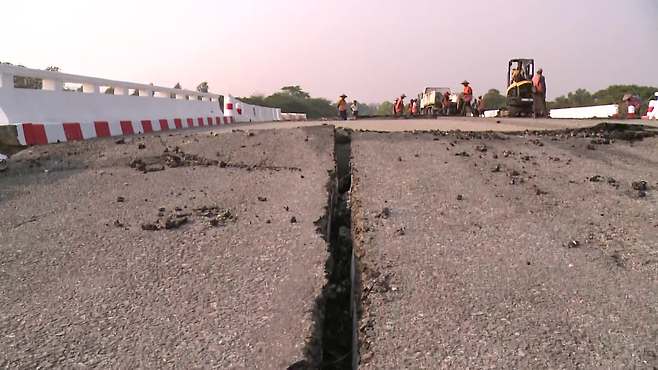 양곤에서 만달레이까지 평소였으면 8시간 남짓한 거리입니다. 처음 6시간 정도는 도로를 달리는 데 큰 문제가 없었습니다. 양곤과 만달레이의 중간쯤에 있는 수도 네피도 인근부터 갈라지고 찢긴 도로가 곳곳에서 눈에 띄었습니다. 차선 하나가 완전히 망가져, 한 차선으로 상·하행선 차량이 번갈아 달리기도 했습니다. 두꺼운 콘크리트 도로마저 찢어버린 강진의 위력을 확인한 순간이었습니다. 결국 만달레이까지는 11시간이 걸렸습니다.