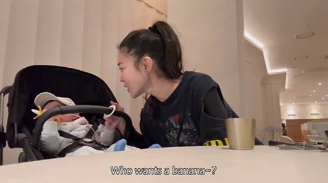 영상 속 김윤지는 남편, 딸과 함께 식사를 위해 외출에 나섰다. 식사를 기다리던 김윤지는 딸이 따라할 수 있도록 '엄마', '엄마'를 외친 뒤, 'Hi, everyone'이라면서 일상 속에서 자연스럽게 영어를 사용했다.